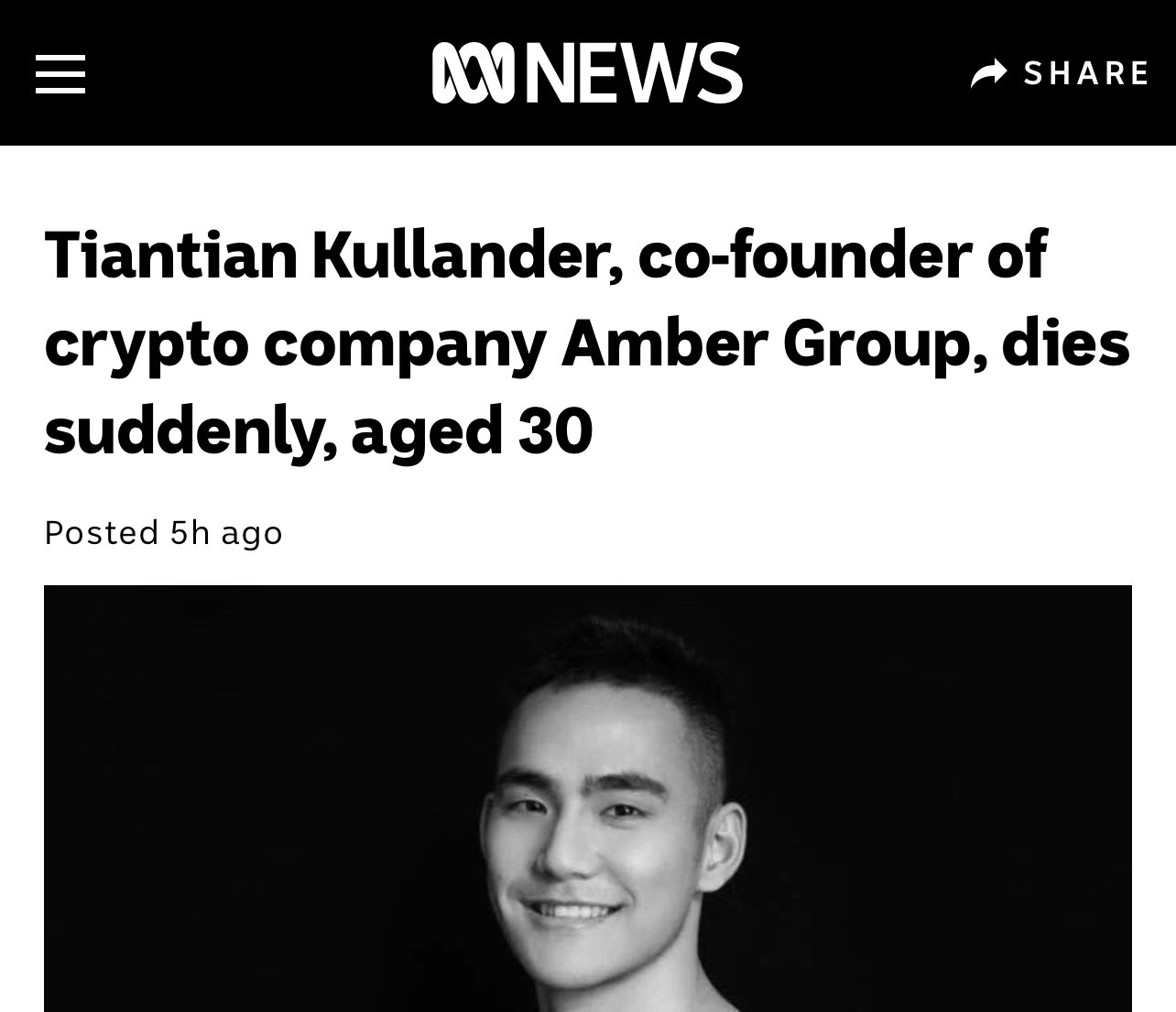 Tiantian Kullander passed away unexpectedly in his sleep on November 23 2022 Amber Group said in a. In 2017 with the help from the likes of former Goldman Sachs Group Inc and some employees. The abrupt and unexpected death of a young crypto pioneer at the age of 30 has shocked the financial community.